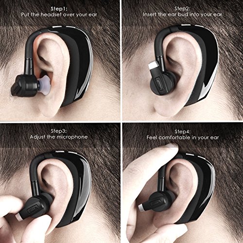 Unique and Rotatable Headset. Liger headset comes with rotatable ear hook. It can be rotated freely up to 180 degree for left or right ear, and for the most comfort angle. Connect Two Devices at the Same Time. It can be paired with 2 smart-phones simultaneously. This gives you a wider selection. You can seamlessly switch between your business and personal phones, and you'll never miss any call. Painless Mobile Epoxy Earmuffs. Epoxy earmuffs are nice and smooth. Ergonomic design offers much comfortable wearing experience. When you listen to music and make phone calls, you will not feel any discomfort. Long Talking and Standby Time. A micro USB cable is used to charge the headset. And a full charge takes 2-3 hours. You do get about 7 hours of talk time or listening to music and then 150 hours of stand-by time.What You Get in the Box: