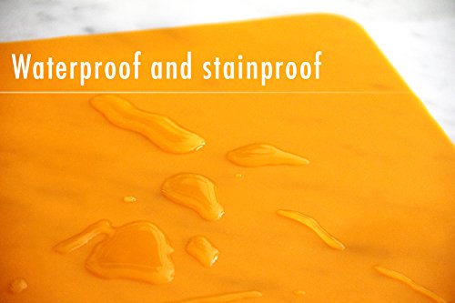 LIGHTWEIGHT & FLEXIBLE: Super slim design so you can roll it up and take it wherever you go for a clean eating surface for your child. Unlike standard silicon mats which are very thick and rigid, our mats can fold into bags, lunch boxes and backpacks without taking up valuable space. Dimensions: 16" x 12". Due to being optimized for travel and storage, these mats are 1mm in thickness and very flexible, we do not recommend purchase if you are looking for stiff or rigid silicone mats.