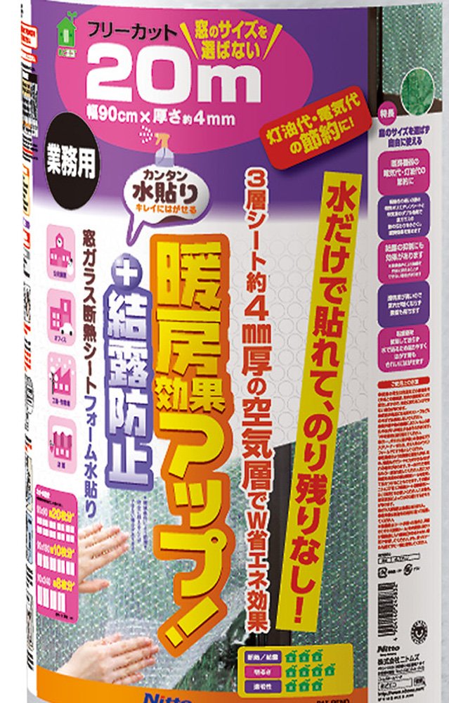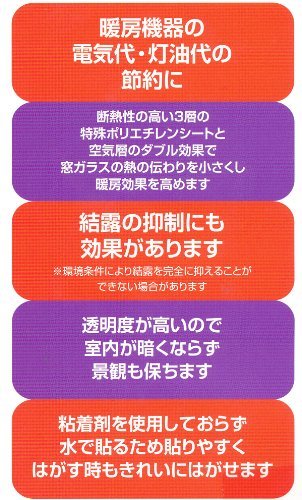 結露の抑制、電気代節約、灯油代の節約に貢献、水だけで簡単に貼れて、のり残りなし