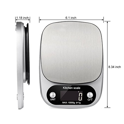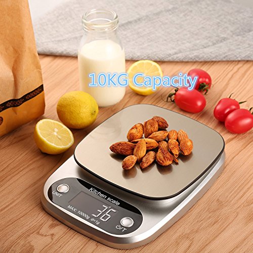Leeko Digital Kitchen Scale, 22lb 10kg Food Weight Scale Digital Food Scale with LCD Display, High Accuracy, Stainless Steel(Batteries Included)