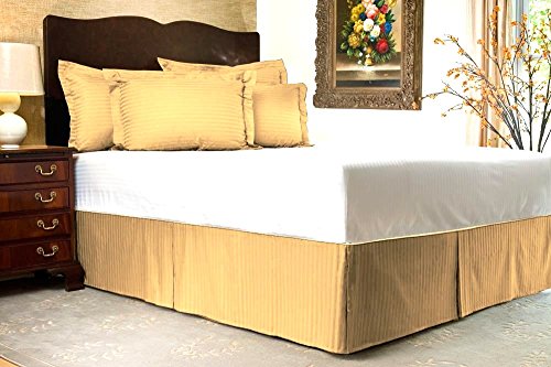 Vedanta Home Collection Hotel Quality 700-Thread-Count Egyptian Cotton Full Size One Piece Split Corner Bed Skirt 17 Inch Drop Length gold Striped