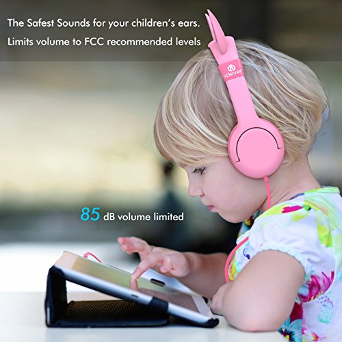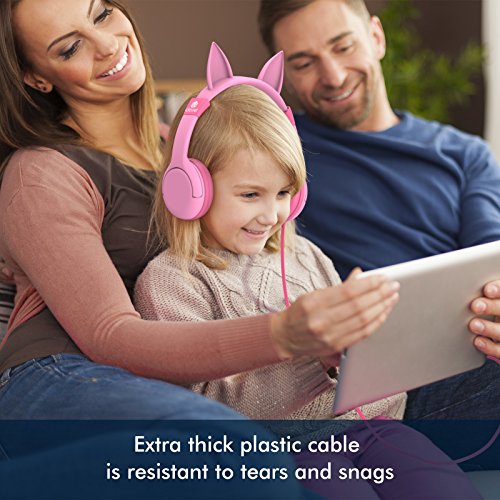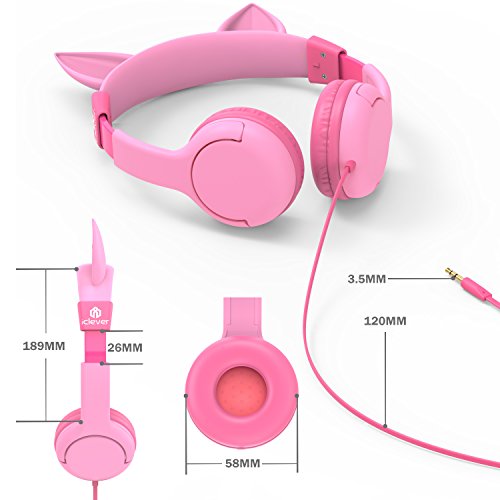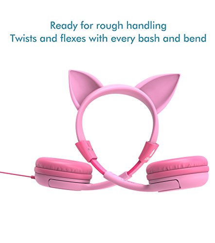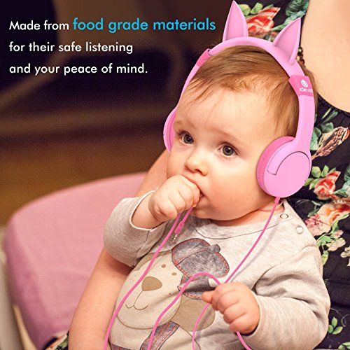 iClever BoostCare Kids Headphones, Wired Over Ear Headphones with Cat Ears, 85dB Volume Restriction, Food Grade Silicon, Thicken Cable, 3.5mm Jack (HS01), Pink