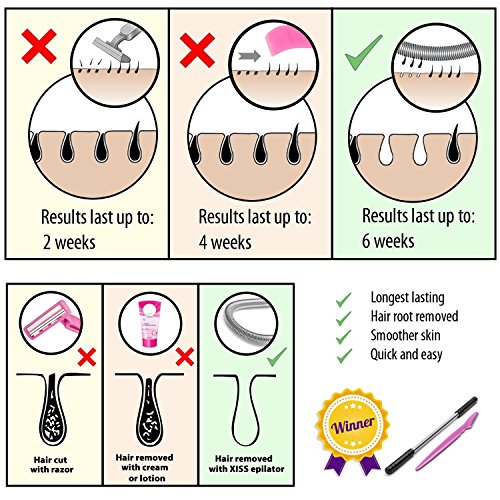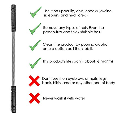 - Feature : SUITABLE FOR SENSITIVE SKIN - Eliminate the use of potentially harmful bleaching creams that can burn and discolour sensitive skin. XISS epilator will remove hair from your chin, cheeks and upper lip areas only. / RESULTS LAST UP TO 6 WEEKS - Facial hair is quickly and effectively removed from the root without breakage. Hair grows back thinner and less course over time, making your unwanted facial hair less noticeable. / CHEAPER THAN BEAUTY TREATMENTS - Save money on expensive hair removal treatments such as laser treatment, sugaring, waxing, threading and electrolysis. Your low cost one time purchase will last you for months to come. / CONVENIENT & EASY TO USE - The XISS epilator is small, portable enough to travel with, and does not require batteries or maintenance. Simply use in the convenience of your own home, at work, or on vacation. / NO MORE UNATTRACTIVE FACIAL HAIR - The amazing XISS epilator facial hair epilator will quickly and easily remove unwanted facial hair in the comfort and privacy of your own home. Simply Bend & Roll. No more squinting in the mirror with a pair of tweezers. Facial hair remover threading tool.