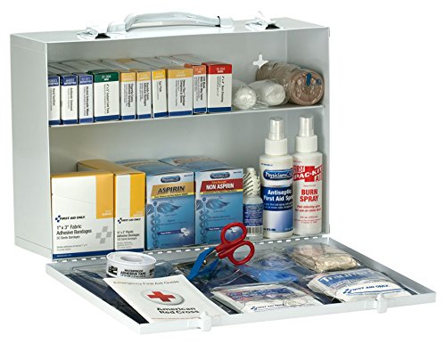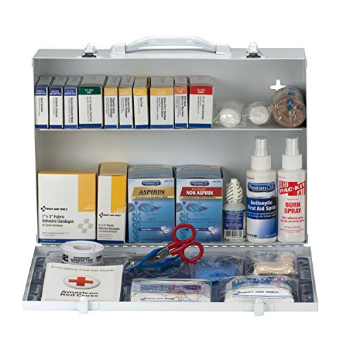 Studio : Pac-Kit Publisher : Pac-Kit Binding : Misc. Product Description 1) G121: fabric bandages, 1" x 3", 50ct (1) A4003: antibiotic ointment packets, 10ct (1) 13-080: antiseptic spray, 4oz (1) 21-011: CPR mask with one way Valve (1) 16-004: burn dressing, 4" x 4" (1) 13-040: burn spray, 4oz (1) 21-004: cold compress, 4" x 5" (1) 7-002: 4 sterile eye pads and 4 strips (1) K708: eyewash, 1oz (2) m246-1000: conforming Gauze rolls, 2" (1) 17-008: Scissors (1) M5072: triangular sling/bandage, 40" x 40" x 56" (1) 35001: first aid guide (1) m584-2000: tweezers (1) G155: plastic bandages, ¾" x 3", 100ct (1) 750013: hand sanitizer packets, 0.9G, 10ct (2) m215-dukal: Gauze dressing pads, 3" x 3", 2ct (1) m685-p: first aid tape, ½" x 5yd (1) 1-009: Knuckle fabric bandages, 8ct (1) 1-010: fingertip fabric bandages, 10ct (2) 12-011: alcohol wipes, 10ct (1) 20-155: aspirin tablets, 50ct (1) 54036: non-aspirin tablets, 50ct (1) 2-016: hem-flex 5" x9" trauma pad in 4" x 4" Gauze, 2 nitrile gloves (1) m284-400: trauma pad, 5" x 9" (1) 361005: nitrile exam gloves, 2 CT. 0