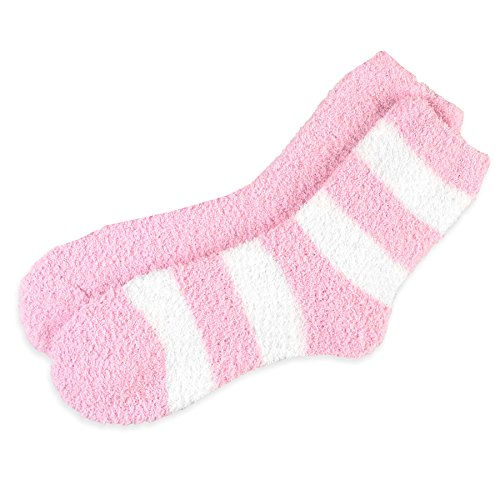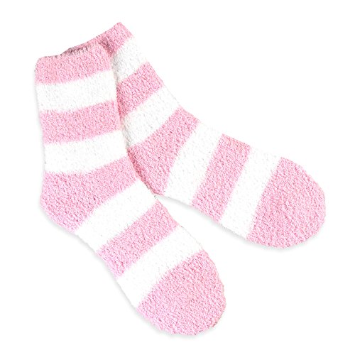 - Title : Fashionable Cozy Fuzy Slipper 2 Pair Pack Women's Crew Socks - Rugby Stripe, Pink size 9-11