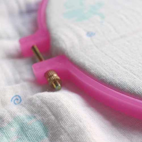 - Easily adjust and hold firmly - Sewing hoops are secured by metal screw attachment, which firmly hold the fabric in place, allowing for a tight surface on which to work.