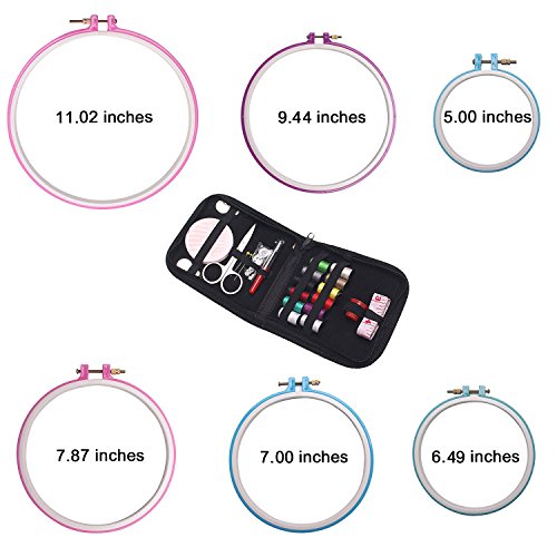 - Wisehands 6 Stitch hoops diameter to meet different needs: 11.02”, 9.44”, 7.87”, 7”, 6.5”, 5”. And it will comes with a needle and thread package with 26 craft accessories as different sewing tools.