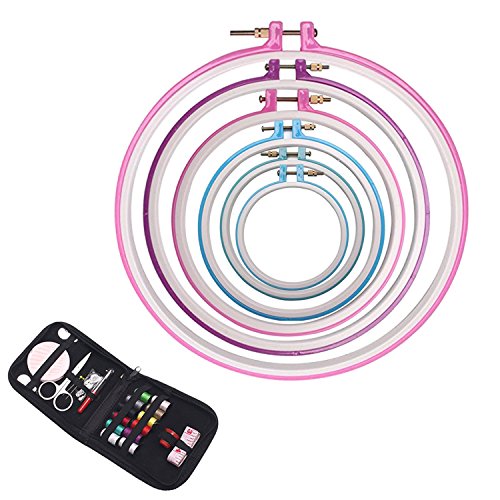 Wisehands 6 Pcs Embroidery Hoop Adjustable Cross Stitch Circle Hoop Embroidery Circle Set (5’’~11”) with a Needle & Thread Package (Random Color)