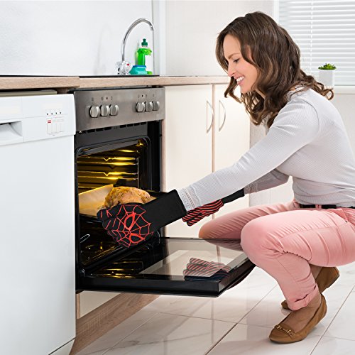 Goutoday Oven Gloves Heat Resistant Cooking Mitts-BBQ Grilling Cooking Gloves - Fireplace Accessories and Welding,Cut Resistant and Forearm Protection with High Performance Heat Resistance