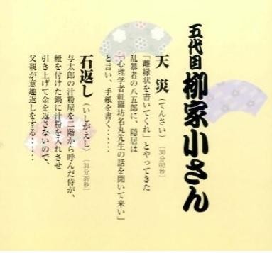 五代目柳家小さんの古典落語CDです。