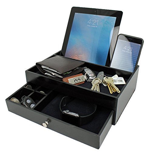 - ☑️ BEST PRESENT TO A GUY who is always losing his keys and such. The most presentable gift for your loved one. This valet stand for men makes a great gift for a father, boyfriend, husband, son, boss, friend, guest, or any other person in your life. The mens accessory organizer can also be used as a valet charging station, being a simultaneous phone and tablet charging dock