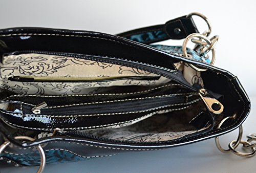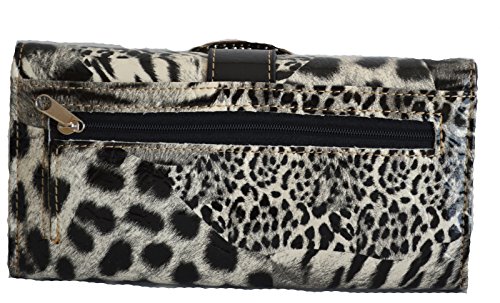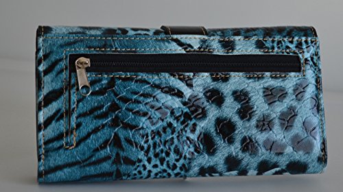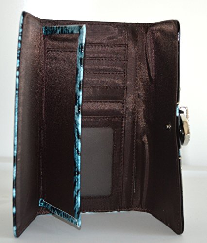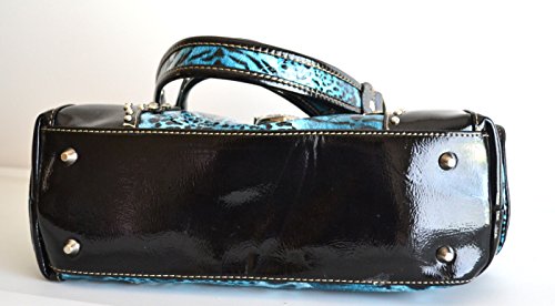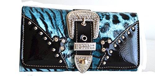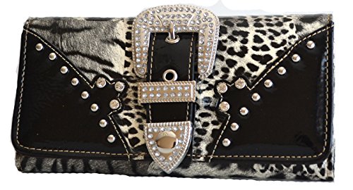 Product DescriptionAnimal print design glossy pu leather body with rhinestone buckle accent purse and matching wallet with black trim0