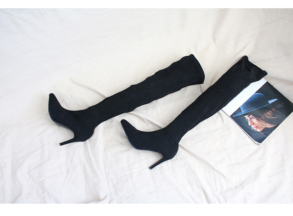 KAR1756. 라드핀[MD COMMENT]페미니한 무드로 자꾸 시선이 가는 롱부츠 소개해드릴게요-무릎 위까지 잡아주는 롱한 길이감이여서한겨울까지도 따뜻하게 착화되는 요아이는날렵한 스틸레토 쉐입으로 엣지있게 연출되는 슈즈랍니다 XD전체바디가 딥한 블랙스웨이드로 제작되어어디에 매치해주어도 시크한 마무리가 되는 라드핀놓치지말고 서둘러 겟 해보세요 ♥