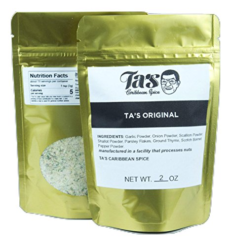 - TA'S ORIGINAL SEASONING WILL BE A DELIGHT TO YOUR SENSES! The aroma will pull you in and the taste will seal the deal. This multipurpose Caribbean inspired spice has the perfect blend of fresh ingredients for a satisfying taste every time! All of our ingredients in this gourmet spice, including the shallots, thyme and scotch bonnet peppers, are all dehydrated to help retain the quality of ingredients. Spice up any dish from chicken to fish, meats, vegetables, pasta dishes, and rice and beans.