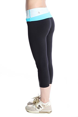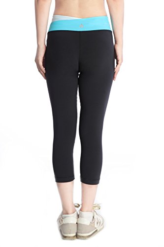 Temple Yoga Women's Premium Stretch Leggings Nylon Lycra Blend 2-tone Fold Over Waistband Yoga Pants