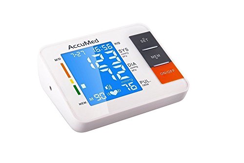 -. Title : AccuMed ABP802 Portable Upper Arm Blood Pressure Monitor with One-Touch Intelligent Automatic Measurement (White) - 4-in-1 Functionality for Systolic / Diastolic BP, Heart Rate (BPM), Hypertension Guide (WHO Classification Indicator), & Arrhythmia Alerts - Includes Voiced Audio / Silent Mode, High-Contrast LCD Display, Built-in Storage Memory, Carrying Pouch, USA Warranty, and More *FDA Approved with Clinically Proven, Professional Accuracy for Home Medical Use