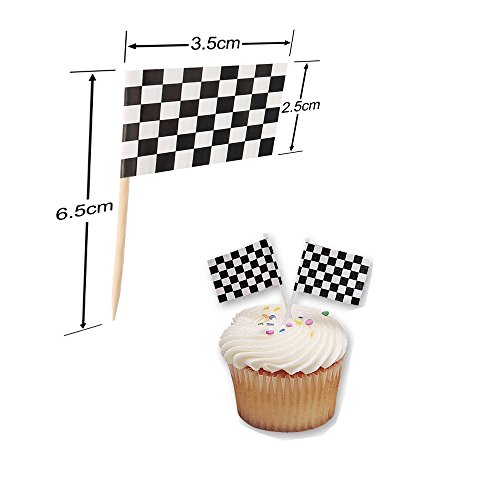 - Checkered Flag Feature ; flag size is 3.5 x 2.5 cm/ 1.38 x 0.98 inch, and the racing flag is mounted on a 6.5 cm/ 2.56 inch long toothpick