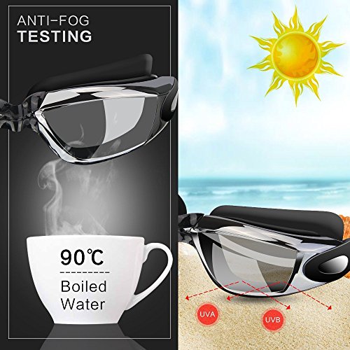 ► ANTI FOG & UV PROTECTION --The inner surfaces of the lenses are anti-fog coated to prevent fogging. You will have a clear and wide sight under water. The outer surfaces of the lenses are carefully coated with ultraviolet-proof material, effectively protect your eyes from being hurt by bright sunlight, especially when you swim in the open air.