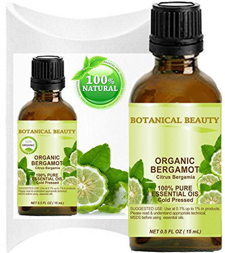 -. Feature : 100 % PURE THERAPEUTIC GRADE ESSENTIAL OIL. Extraction Method: Cold Pressed from the peel of the fresh bergamot fruit. No chemicals or synthetic solvents. No fillers, additives or carriers added. / ORGANIC BERGAMOT ESSENTIAL OIL: natural deodorant, antimicrobial, antiseptic, antidepressant. / SUGGESTED AND POSSIBLE ORGANIC BERGAMOT OIL USES: skin care products, bath products, massage oils. It is a desired ingredient in the soaping industry, detergents and disinfectants or enjoyed in home diffusers. / ORGANIC BERGAMOT ESSENTIAL OIL is used in soaps, candles, cosmetic industries as well as in Aromatherapy. / Available in 0.17 fl.oz- 5ml, 0.33 fl.oz- 10ml, 0.5 fl.oz- 15 ml bottle with euro style dropper cap. Botanical Beauty Essential Oils properly packaged in a dark glass bottle to protect the antioxidant properties from light.