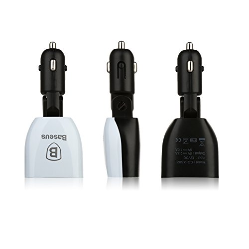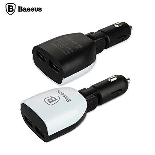Baseus 3.4A 2 Port 12V Input USB Car Charger Dual USB 2.4A & 1.0A Universal Ports for Rapid Charging Designed for iPhone 6 6Plus 5 5S iPad Air 2 Samsung Galaxy S6 / S5 NOTE3/4 Nexus HTC M9 Motorola Nokia Android Cell Phone and More