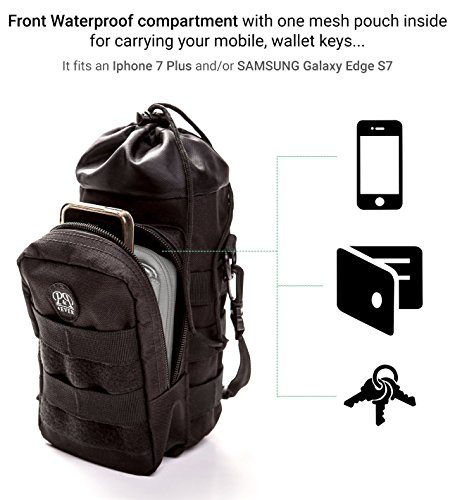 Studio : PP4EVER Publisher : PP4EVER Binding : Misc. Product Description The best water bottle carrier with shoulder strap and pocket with 17oz , 32oz or 42oz ; Accessory Pouchfor walking 24oz: Can put mobile phone , wallet and other small things; Details: ? Water Bottle Storage ? Color - Black ? Waterproof Condor 600D Nylon ? Tactical Molle System ? Lightweight with Drawstring Top Access ? Thicker for Better Insulation ? Holds 1l or 2 liter . Bottles or 1.5L Bladder DESCRIPTION Whether you're hitting the gun range, hiking mountain trails, or spending the weekend hunting, it's important to stay hydrated no matter the weather. That's why we created the PP4EVER Hydration Molle Water Pouch so you can stay on the move and keep enough water with you at all times no matter how hot (or cold) the weather turns, also Outdoor survival bracelet as a gift, with Whistle for sending signal or alarm dangerous animals , Fire Starter and Scaper for cutting Quick Access and Improved Travel Convenience - Water Pouch The top of each plastic drink bottle molle water pouch features a quick access drawstring that lets you flip the straw up on a water bottle or run a bladder hose to a shoulder harness. Better yet, each of our molle bags comes with two convenient travel straps so you can carry it by hand or over your shoulder in case you leave your vest or large backpack behind. You can also substitute a water bottle by placing magazines, first aid equipment or camping gear in the bag if needed. Note: It does not include the water bottle itself. 0