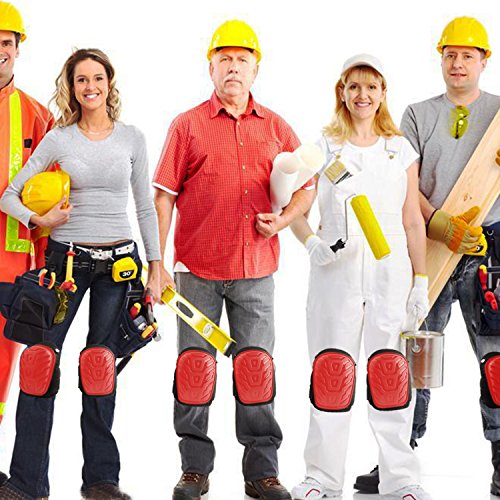 World Backyard Professional Knee Pads with Heavy Duty Cap Soft Gel Cushion Adjustable Double Strap and Easy-Fix Clips Red
