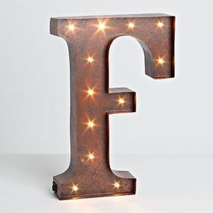 12" - Rustic Brown - Metal - Battery Operated - LED - Lighted Letter "F" | Gerson Wall Decor
