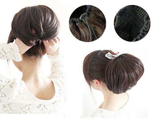 Feature : Synthetic Ponytail Bun Hair Extension / Material: 100% Korea High Quality Synthetic Heat-Resisting Fiber (Temperature: 270-300 Fahrenheit) / Weight: About 2.3 oz; Width: About 8"; Length: About 5"; Color: As Shown in Picture (May Vary by Monitor) / The Size is Adjustable, Fit on Most People. Can be Permed and Washed / Transforming your look in seconds, provides secure and comfortable attachment for all day wear.