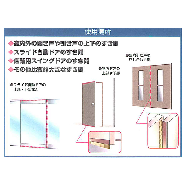 ●自動ドアや玄関ドアや引戸のすき間をふさぎ、風やホコリや花粉の侵入を防ぎます