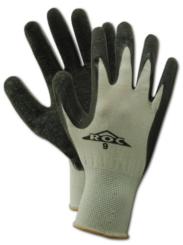 Magid ROC GP190 Nylon Glove, Black Latex Palm Coating, Knit Wrist Cuff, 9" Length, Size 6 (One Dozen)