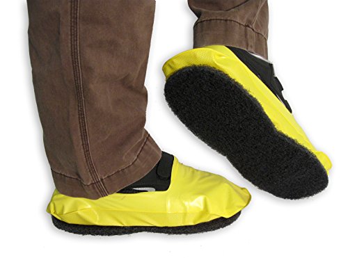 Reduce the risk of slips and falls while stripping or refinishing floors with these PAWS Vinyl Shoe Covers with non-abrasive traction pad. Slips and falls (on the same level) are the second leading cause of all workplace injuries, with compensation and medical costs approximately $70 billion per year, accounting for almost 30% of all workers comp claims. From the industry leader in the floor stripping foot protection category, PAWS Vinyl Shoe Covers are constructed of heavy-duty waterproof vinyl with a super-stripper pad permanently attached. The vinyl protects your shoes from spills and splashes while the traction pad prevents solution from getting tracked outside of job site. These easy on and off vinyl shoe covers are not right or left foot specific. Even though they are considered disposable, these Vinyl Shoe Covers can be washed out and used again. Protect your employees by providing the best Vinyl Shoe Covers on the market for stripping floors, PAWS. Made in the USA, Advantage Products Corporation manufactures rubber and safety footwear to meet many needs. Serving construction, agriculture, JanSan and Industrial-Safety since 1992. For sizing purposes: