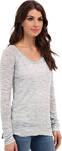 Space-dyed sweater in an airy linen-blend knit. Rolled scoop neckline. Self trim runs down the center back. Long raglan sleeves. High-low hem. Side vents. 51% viscose, 43% linen, 6% nylon. Hand wash cold, dry flat. Imported.