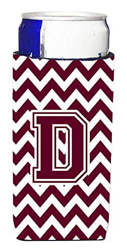Letter D Chevron Maroon and White Ultra Beverage Insulators for slim cans CJ1051-DMUK