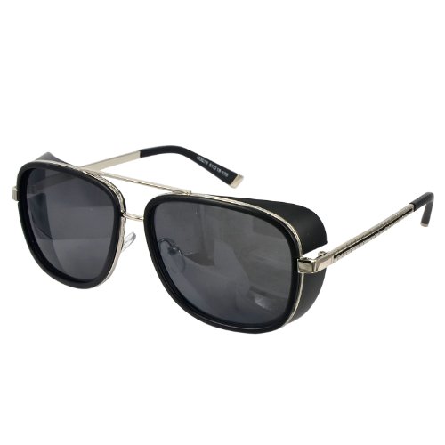 Unisex Retro Sidecups Steampunk Sunglasses Silver Arm Matte Black
