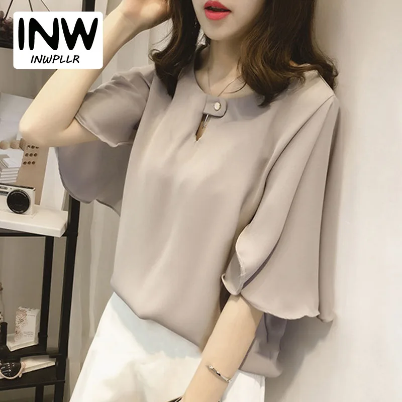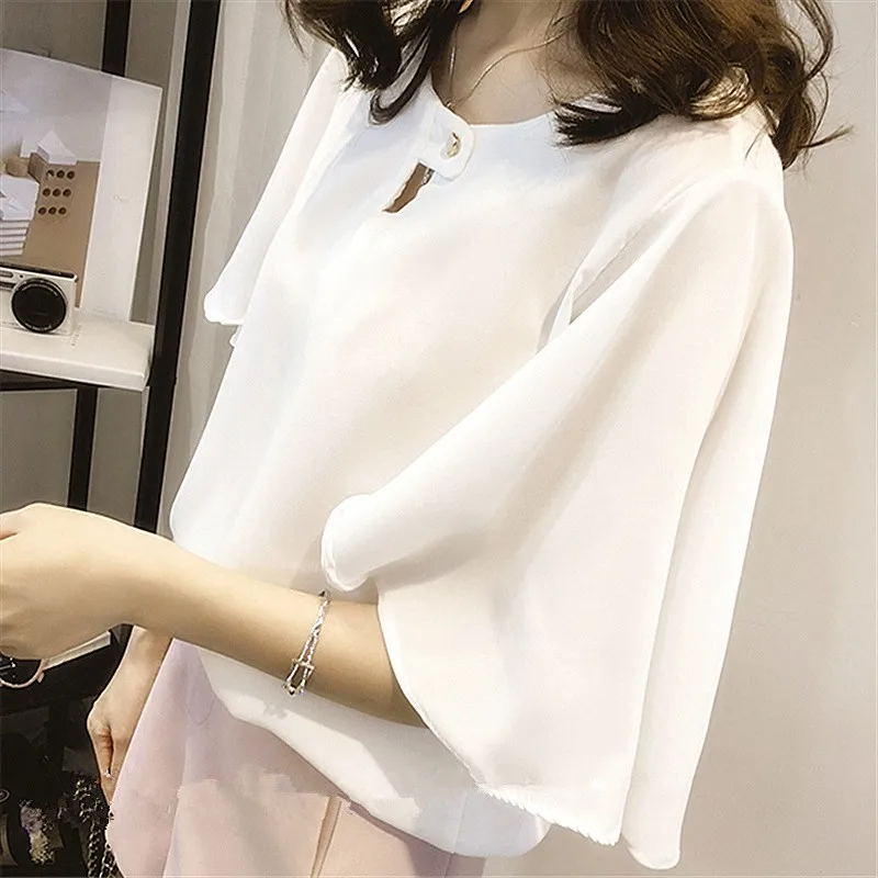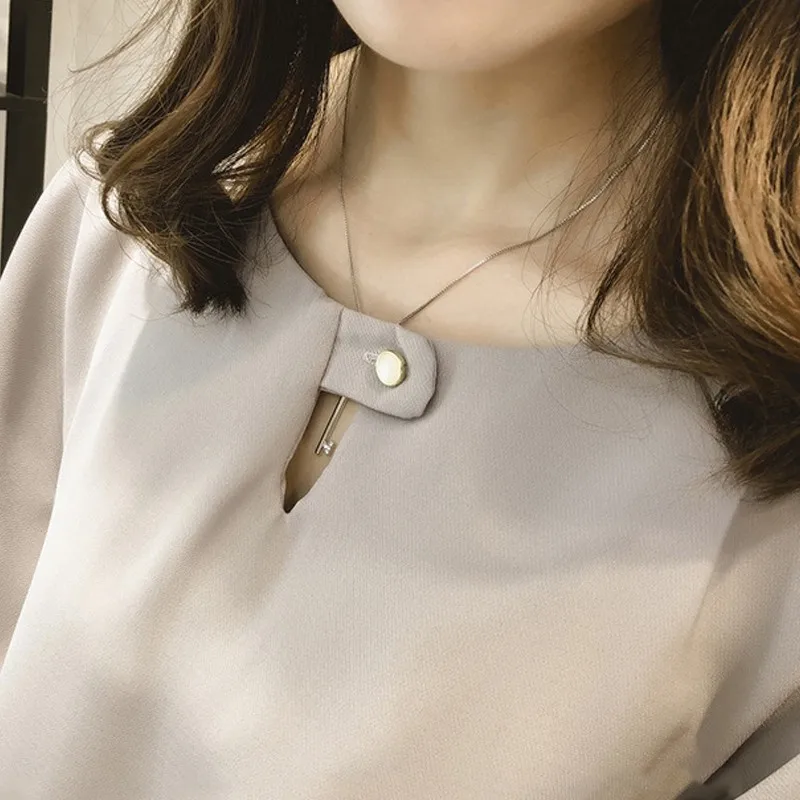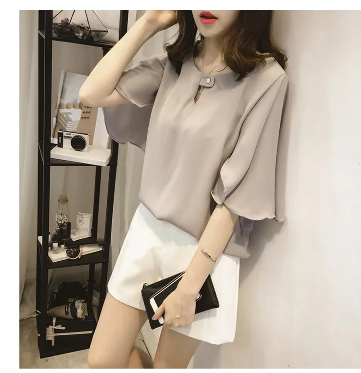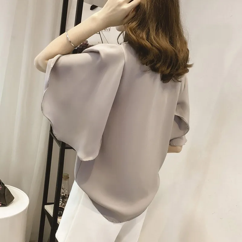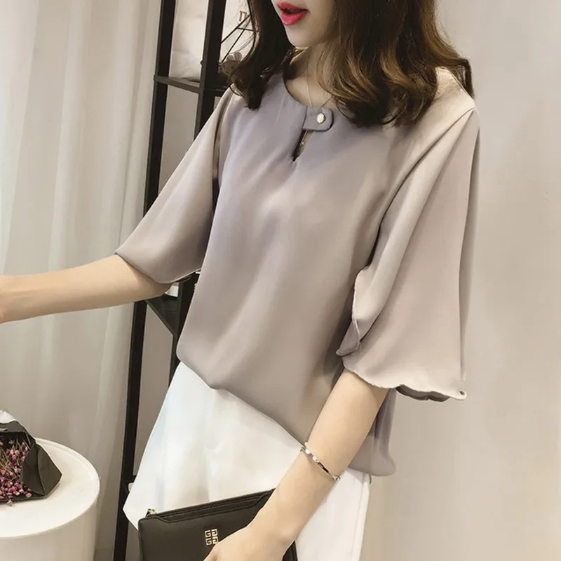Blusa Feminina:Chiffon Blouses Fashion Solid Large Size Tops Blusas Mujer
