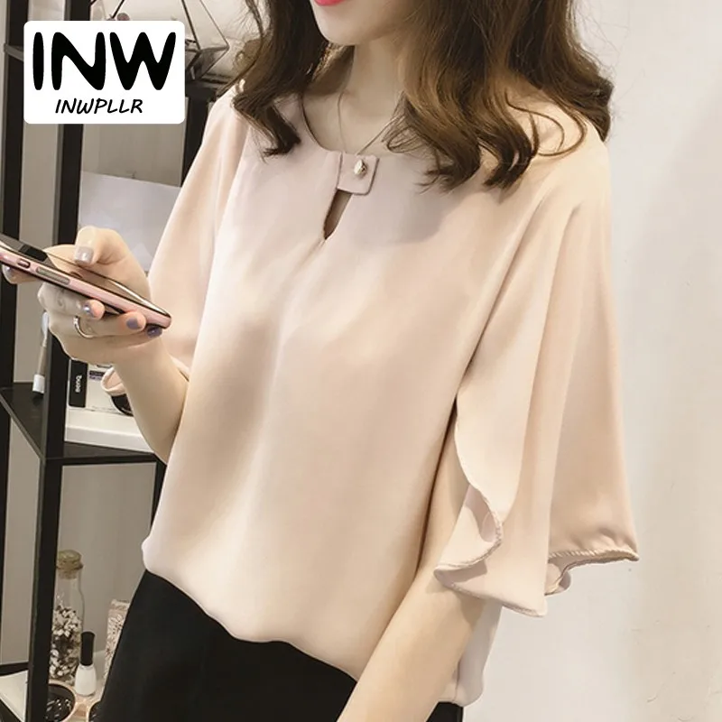 :Women Blouses Shirts 2018 New Summer Butterfly Sleeve Tops Female
