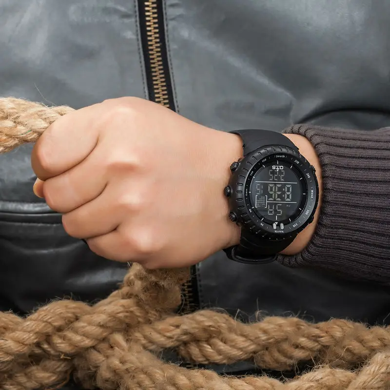Feature:Back Light,Alarm,Water Resistant,Chronograph,Shock Resistant,Repeater,Stop Watch,Complete Calendar,Swim,Auto Date,LED display,Diver