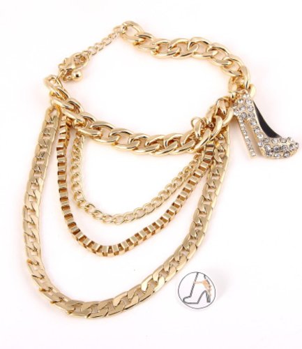 -. Feature : Rhinestone High Heel Shoe Chain - Anklet / AZFJBT021-GLD / Model: AZFJBT021-GLD