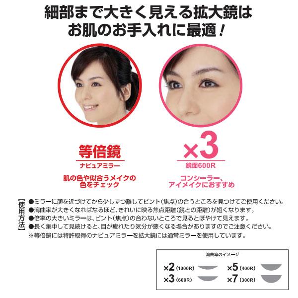 | 素材・材質 | 本体:ABS樹脂、ミラー:ガラスミラー(拡大鏡)・ナピュアガラスミラー(等倍鏡) |