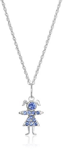 Sterling Silver Swarovski Crystal March Birthstone-Colored Girl Pendant Necklace, 18"