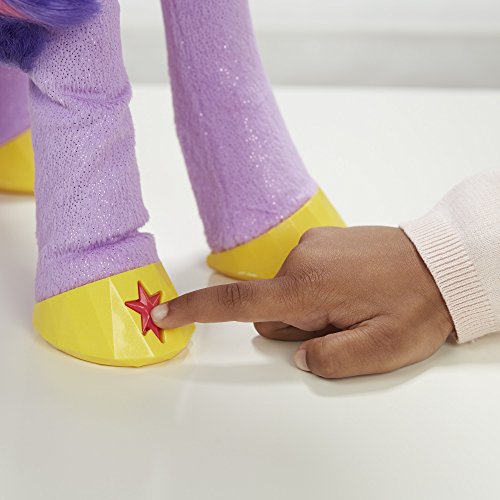 As a faithful pupil to Princess Celestia, Princess Twilight Sparkle is always learning just how magical friendship can be! Discover the magic of friendship with the My Magical Princess Twilight Sparkle figure, a pony with Pegasus wings and a responsive unicorn horn! While interacting with her, she can move her head and hoof, say 90 plus phrases, and light up her horn. Touch her horn to hear her talk about her magical spells! Press the Star Button on her hoof to hear her friendship advice, stories or songs, too! Watch as she flutters her beautiful wings and imagine her soaring over Equestria. She has poseable legs so kids can help her sit or stand. Princess Twilight Sparkle also has a beautiful mane and tail to style and a tiara to complete her look. Explore how powerful friendship can be with this beautiful, interactive pony companion! My Little Pony and all related characters are trademarks of Hasbro. My Little Pony: The Movie 2017 My Little Pony Productions, LLC. Licensed by Hasbro.Feature