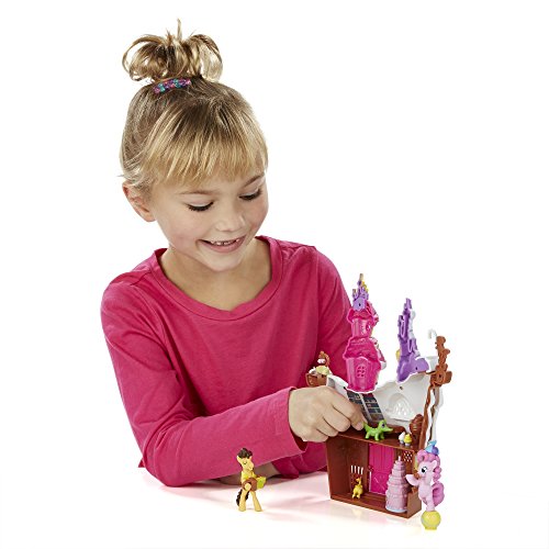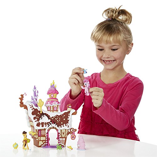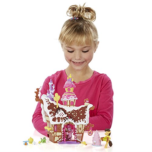 Welcome to Sugarcube Corner! A celebration full of surprises awaits at the Sweet Shoppe -- it's the center of all the super duper party pony fun. The My Little Pony Friendship Is Magic Collection Pinkie Pie Sweet Shoppe playset comes with a Pinkie Pie pony figure, a Cheese Sandwich pony figure, and 10 fun accessories for a super pony party! Imagine Pinkie Pie and Cheese Sandwich both showing off their talent for making everypony laugh and cheer at the Sweet Shoppe!Feature