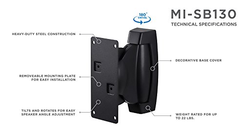 Mount-It! Heavy-Duty Speaker Wall Mount, Universal Adjustable Design For Bookshelf, Large or Small Speakers, 1 Pair, 22 Lbs Capacity, Black