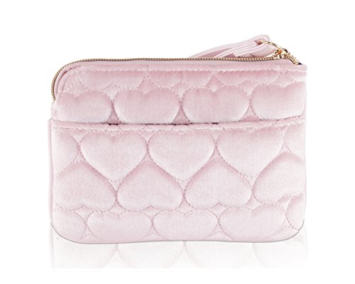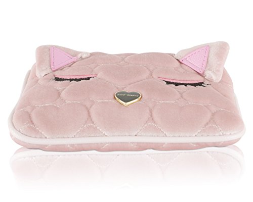 -. Title : Betsey Johnson Sleeping Kitty Velvet Quilted Wristlet Pouch - Blush