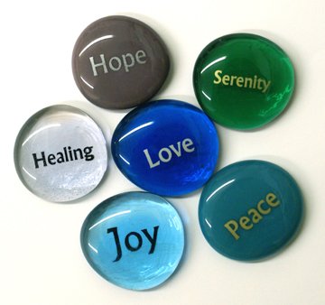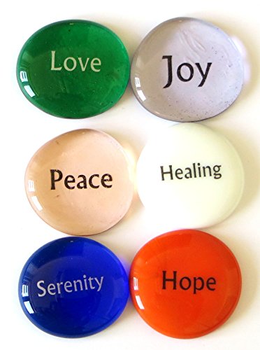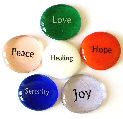 Focus Stones, 6 Inspiring, Encouraging and Motivating Single Words Imprinted on Glass Stones. By Lifeforce Glass, Inc. Set II.