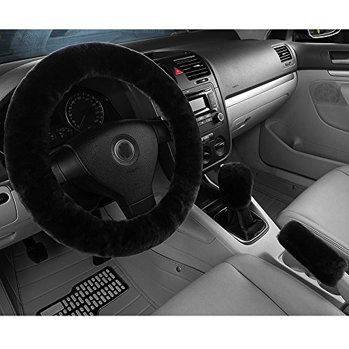 -. Title : ALLCACA ハンドルカバー 自動車 方向パネルカバー 防寒 取り付け簡単 高密度 ふかふか 使いやすい 滑り止め 耐久性 ウール製 3個1セット ブラック