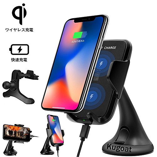 -. Title : Kugoat Qi(チー) 急速充電 ワイヤレス 充電器 車載 エアコン吹き出し口&吸盤式両用 車載ホルダー 360度回転 iPhone X/8/8 Plus Samsung S8/S8+/S7/S6等対応 重力で自動調節
