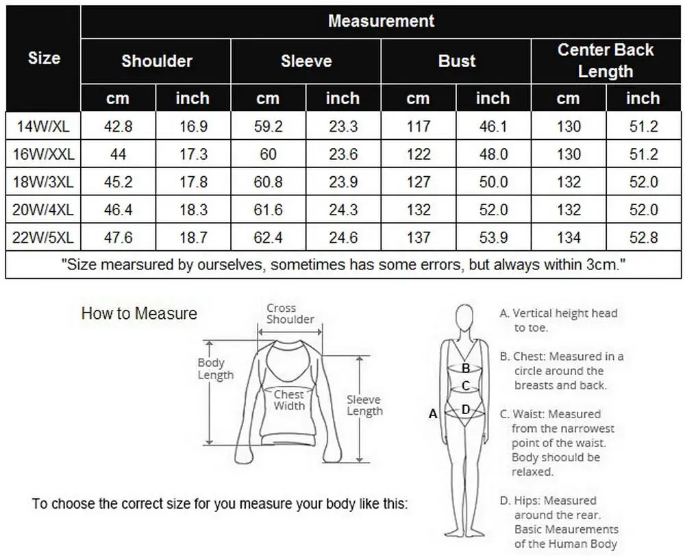 Size:14W, 16W, 18W, 20W, 22W(L,XL,XXL,3XL,4XL)