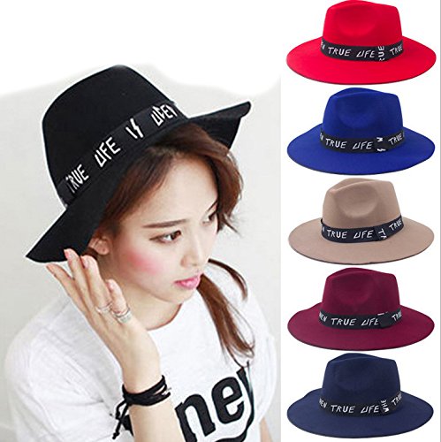 -. Title : Bigood Fashion Letters Pattern Wide Brim Floppy Hats Casual Warm Fedoras Hat