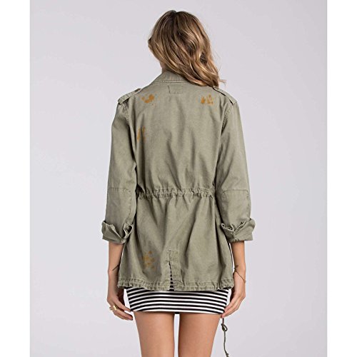 Washed down utility style jacket with multiple pockets throughout, button closure and draw cord at waist.